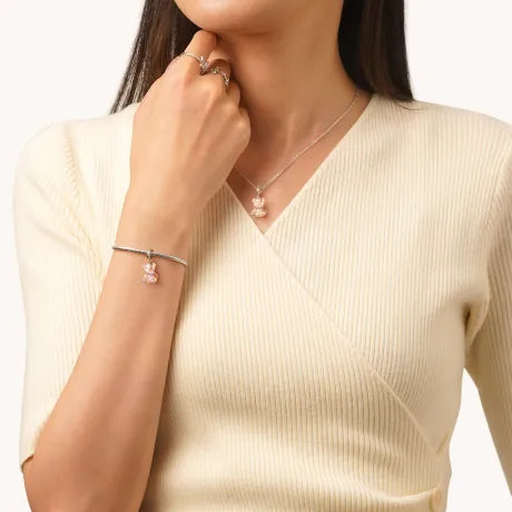 Crafted from 925 sterling silver, this captivating piece features an adorable, light-pink bear with a delicate, dreamlike quality. Perfect for gifting to friends, or family, or as a treat for yourself, this pendant adds a touch of playful magic to any ensemble. Embrace the enchantment of this fantasy-inspired accessory and let it bring a smile to those you cherish.